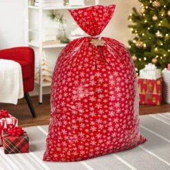 Hallmark Snowmen On Blue And Snowflakes On Red 2-Pack Giant Plastic Christmas Gift Bags