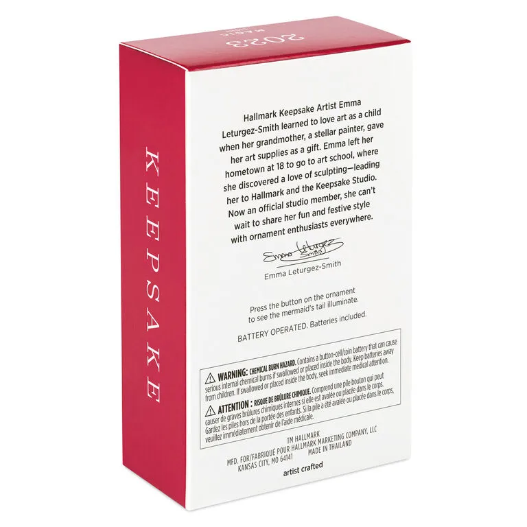 - Key Features: Press the button on the Magic Light ornament to see the mermaid’s tail illuminate.