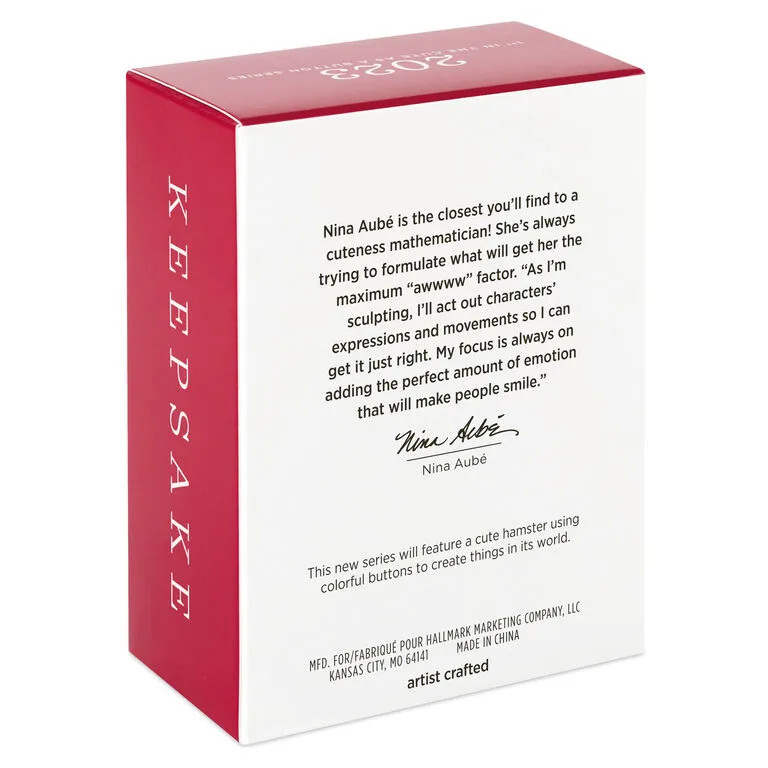 You won’t mind this cute little creature stirring on your tree! This happy hamster loves to create things that are just his size from colorful buttons. First in a charming new series, he wears a festive red and green scarf as he crafts a Christmas tree with a star-shaped button on top.
