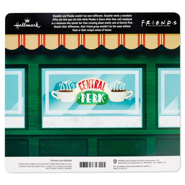 Relive the funny and heartwarming memories from the iconic “Friends” television series when you add this set of itty bittys to your collection. Stylized plush versions of two popular characters feature Phoebe with her guitar and Chandler holding a Central Perk latte cup. Makes the perfect gift for pals who love the popular sitcom.
