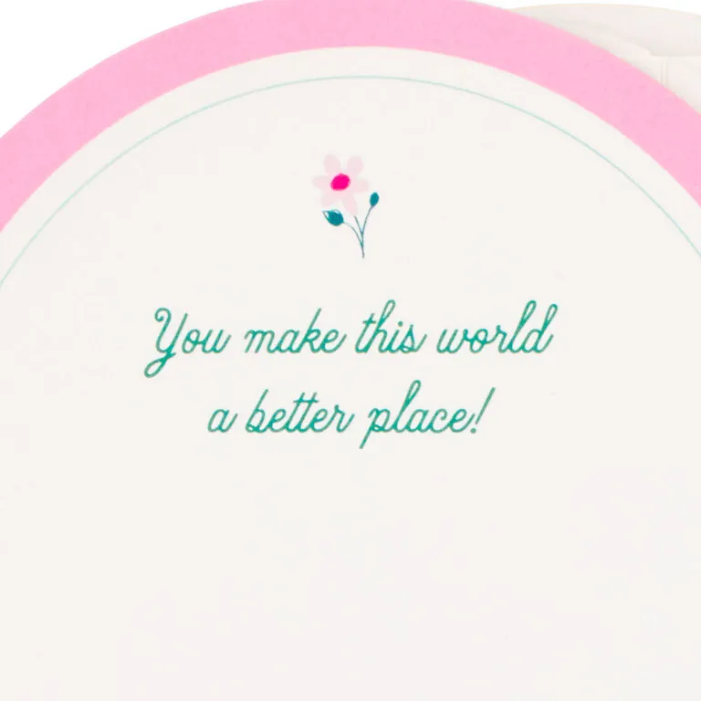Pop-up Mother’s Day greeting card features a laser-cut, three-dimensional scene of Snoopy from Peanuts holding a bouquet of flowers for her in a 3D molded plastic snow globe-style design. Musical card plays a cheerful instrumental tune while confetti blows inside when button on front is pressed. Simply unfold the card (no assembly required) to create a fun surprise that can be displayed all year long. When open for display, 3D pop-up card measures approx. 7.13″ H.